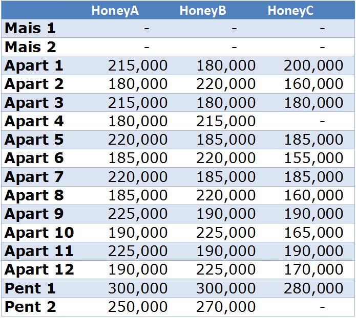 HoneyComb Pricelist